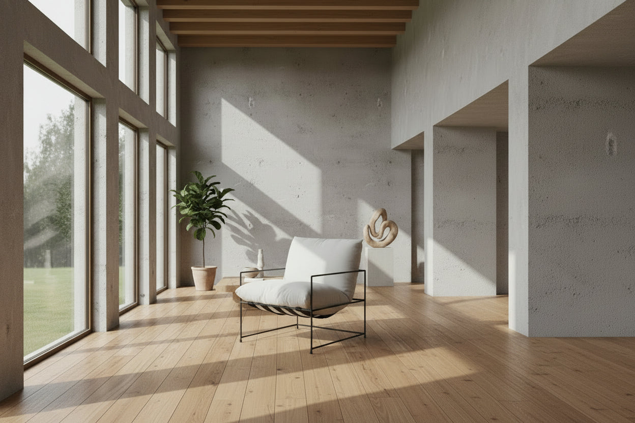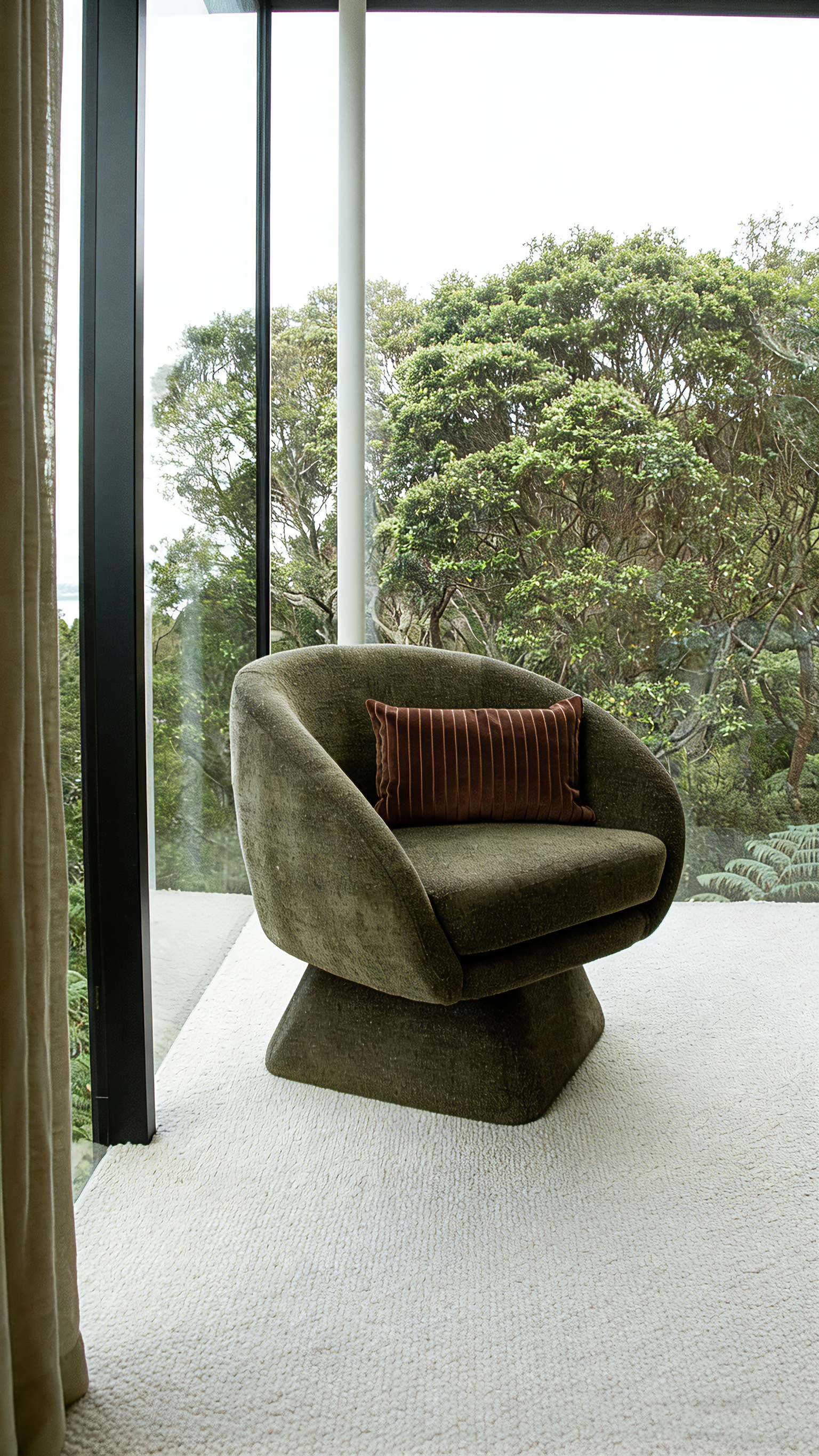 The frame is made of slender black metal, and the seat and backrest are upholstered in soft, fluffy white fabric. It features a suspended structure, resulting in a lightweight and minimalist design.